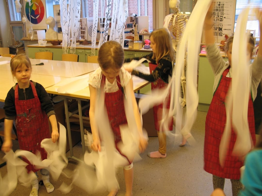Paperiteosten kanssa ovat työskennelleet Kalajärven opetuspisteen oppilaat sekä Tapiolan lauantai-ryhmän Paulan oppilaat.